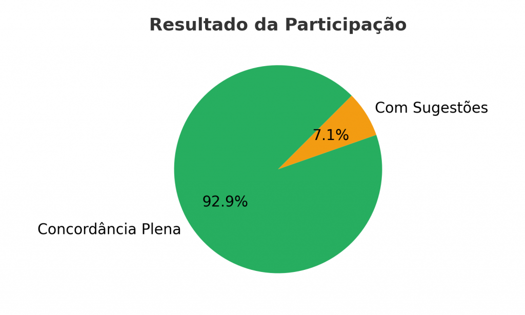 92,8% (26 votos): Concordância Plena (Responderam apenas “Sim”, “Concordo” ou “De acordo”).